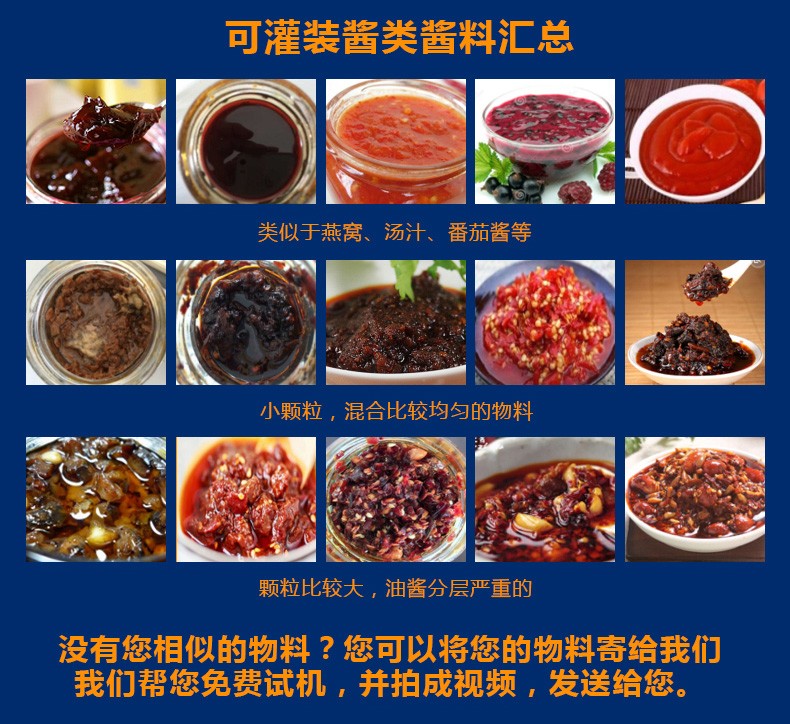 該生產(chǎn)線適合中小口徑三旋、四旋玻璃瓶調(diào)味醬的分裝,適合醬料、含顆粒黏稠物料的灌裝,物料接觸部分均采用316不銹鋼